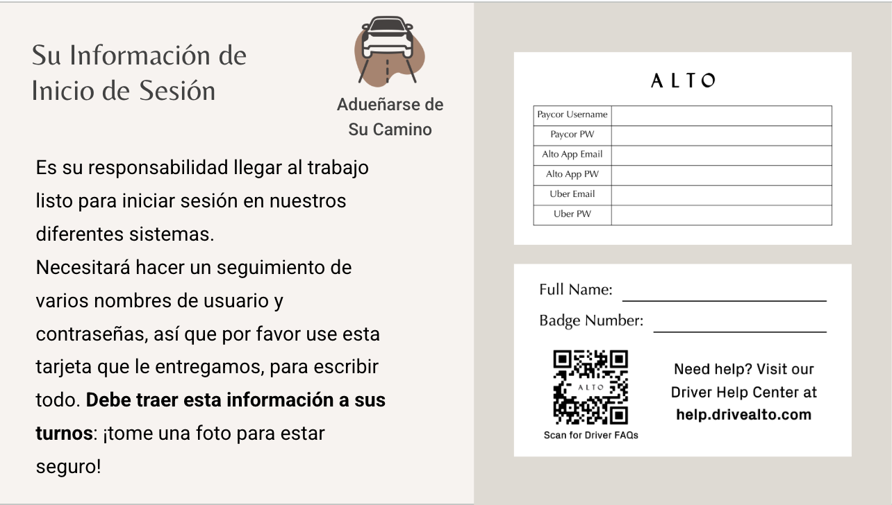 - Lleve su tarjeta de información de inicio de sesión (o foto guardada)